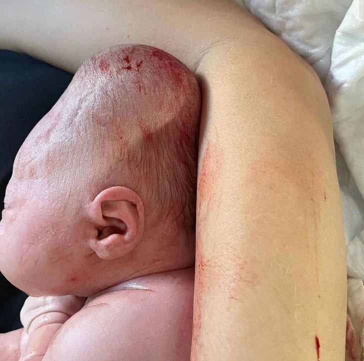 Οφείλεται στην πίεση που ασκείται στη διάρκεια του τοκετού, είναι ακίνδυνο και υποχωρεί μέσα σε λίγες μέρες. Τα οστά του κρανίου του νεογέννητου δεν είναι ενωμένα μεταξύ τους και χωρίζονται από τις «ραφές» και τις «πηγές». Το κεφαλάκι του σε εκείνα τα σημεία είναι μαλακό και δεν πρέπει να πιέζεται.